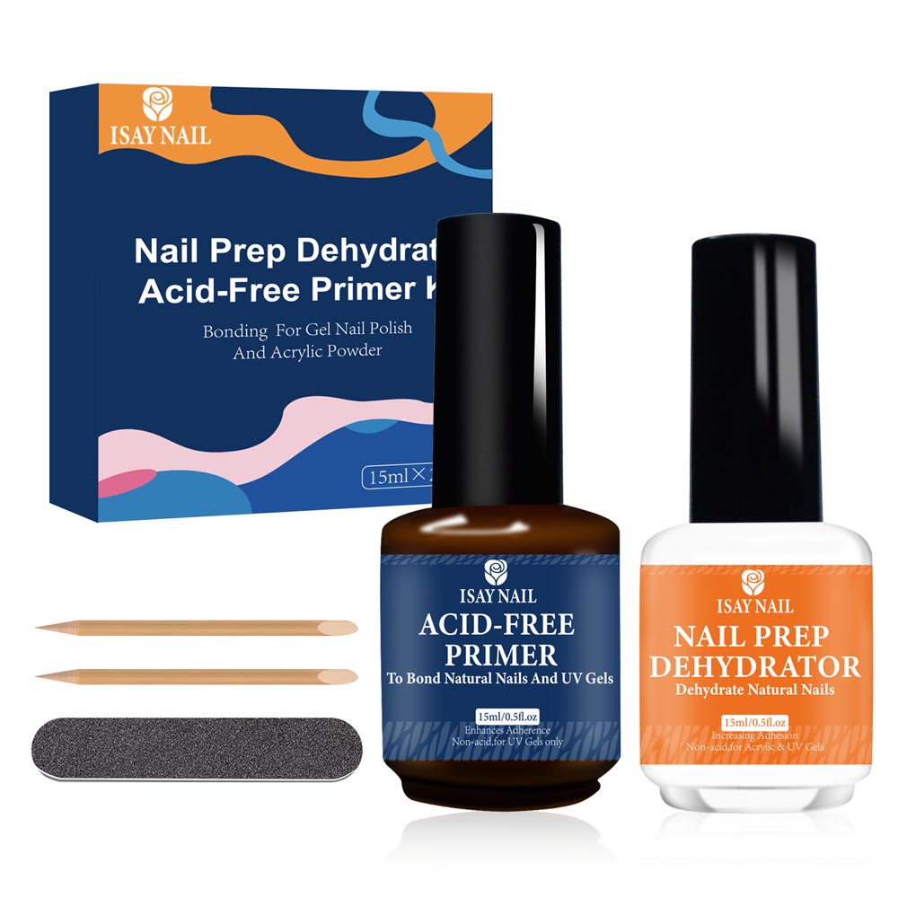 NAIL DEHYDRATOR is especially to get rid of the oil and dry up the whole cuticle in the nail bed area. ACID-FREE NAIL PRIMER is less corrosive and works like double-sided tape to stick nail and product together. So you get double protection against nail peeling. When used together these high-quality products will prevent nails from falling off and provide nails for lasting more than 30 days.